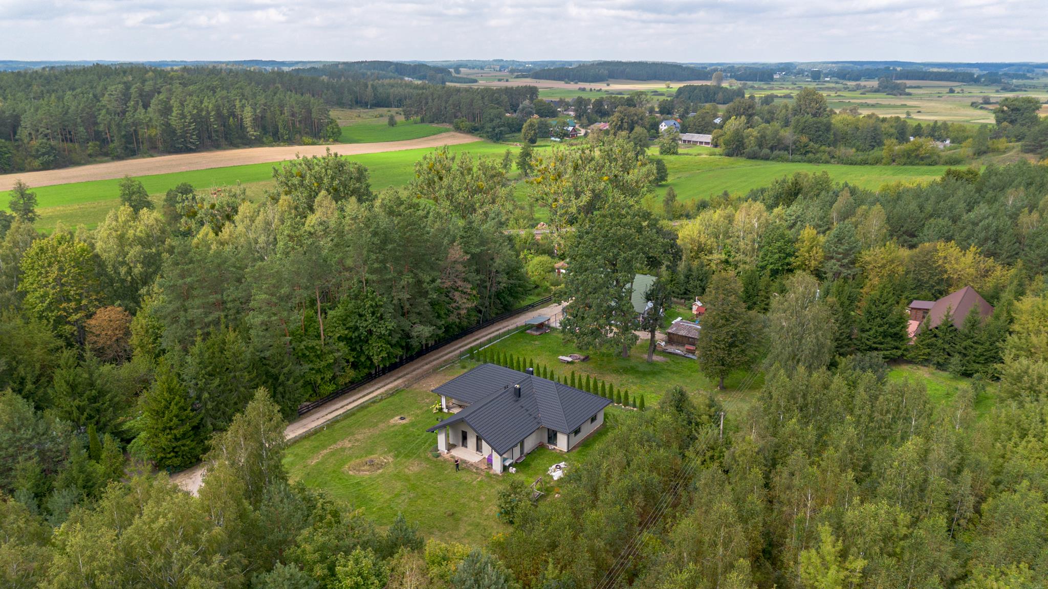 Odkryj wyjątkowy dom parterowy o powierzchni 313,2 m², położony na rozległej działce 1551 m² w malowniczej okolicy Sokółki. To miejsce stworzone dla osób ceniących ciszę, naturę i komfort życia z dala od miejskiego zgiełku. Otoczony zielenią, lasami i strumykiem, zapewnia codzienny kontakt z przyrodą oraz kojącą atmosferę.