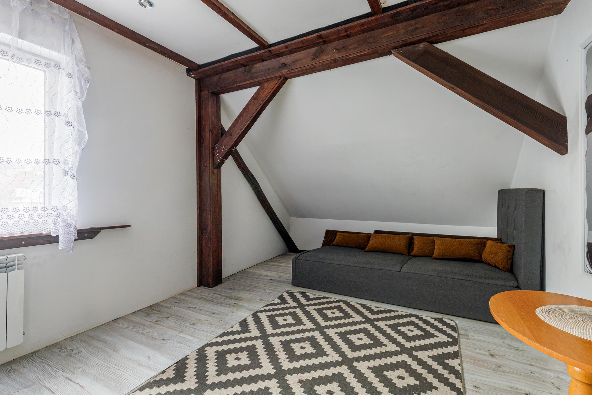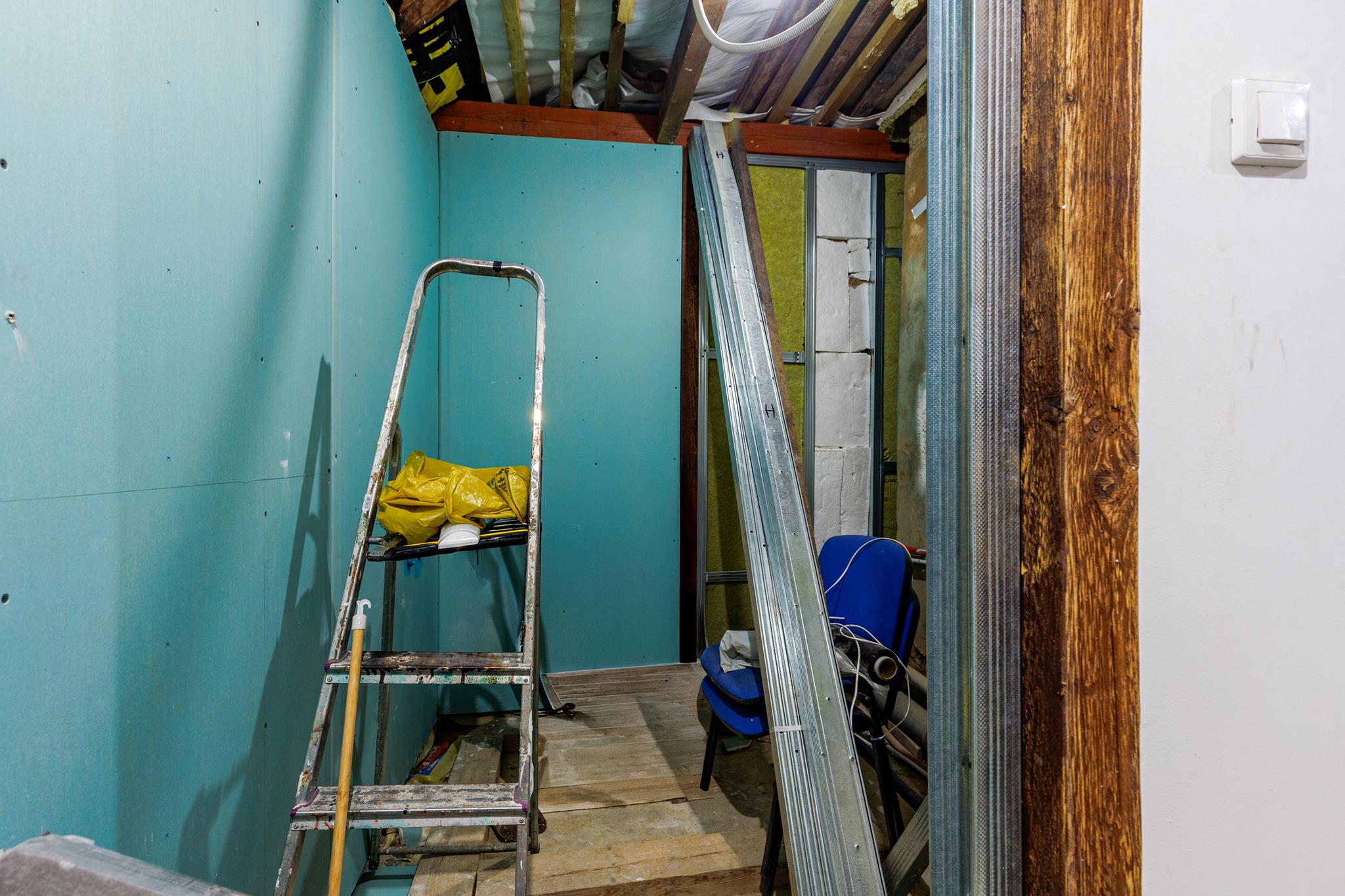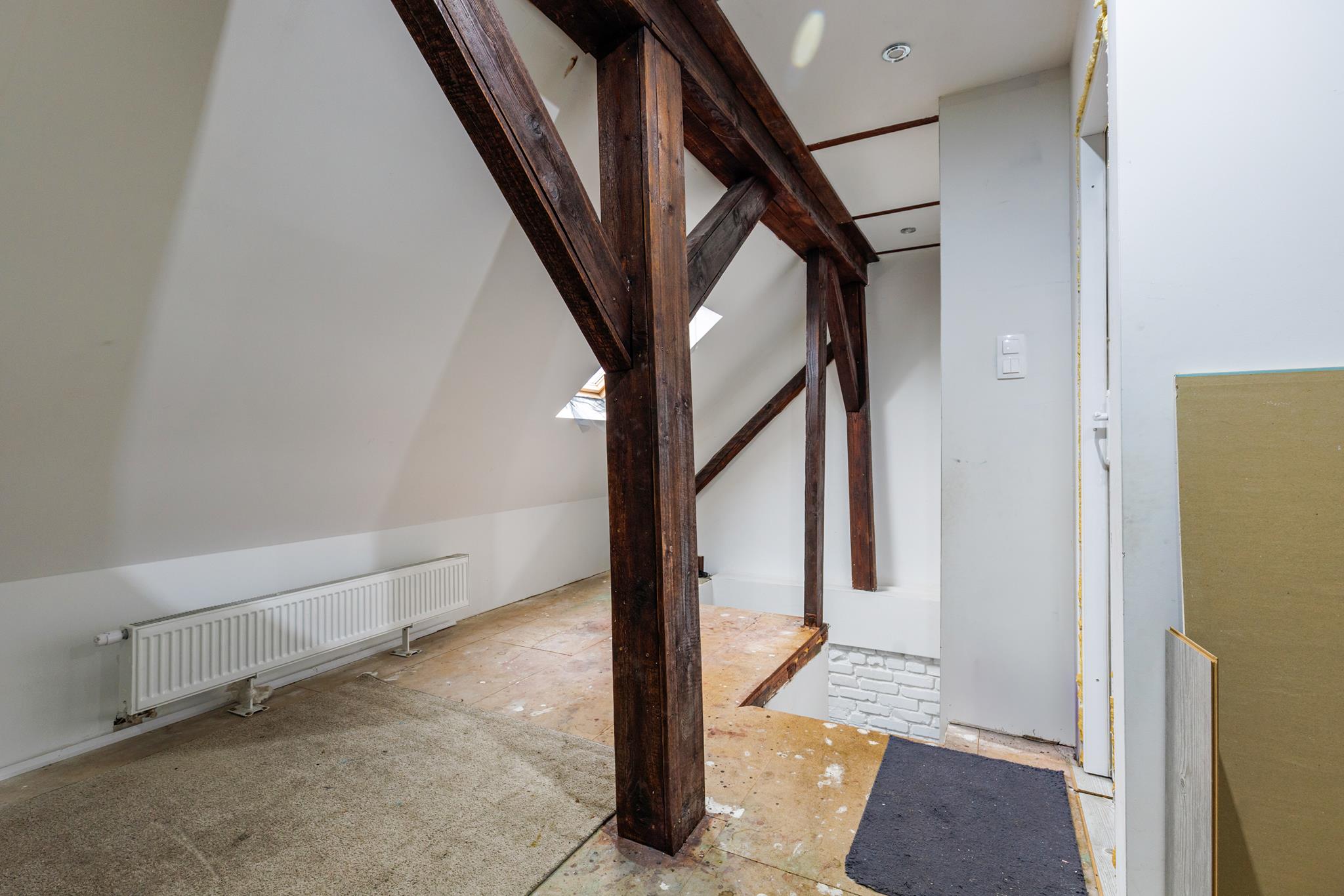 Piętro jest częściowo wyremontowane. W cenie nieruchomości zawarte są również materiały wykończeniowe, m.in. panele podłogowe oraz płyty OSB, co pozwala ograniczyć koszty dalszych prac.
